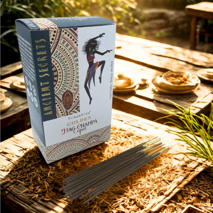 Räucherstäbchen mit Goldener Copal und Nag Champa – ideal für sinnliche Wohlfühlmomente und spirituelle Rituale.