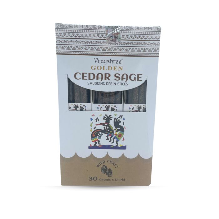 Goldene Zedernsalbei Räucherstäbchen mit feinem Smudging-Harz – ideal für spirituelle Rituale und entspannte Wohlfühlmomente.