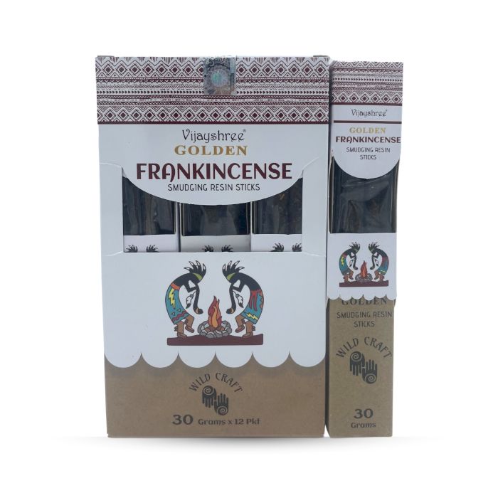 Goldene Smudging Resin Sticks mit edlem Weihrauchharz – ideal für kraftvolle Reinigungsrituale und spirituelle Momente.