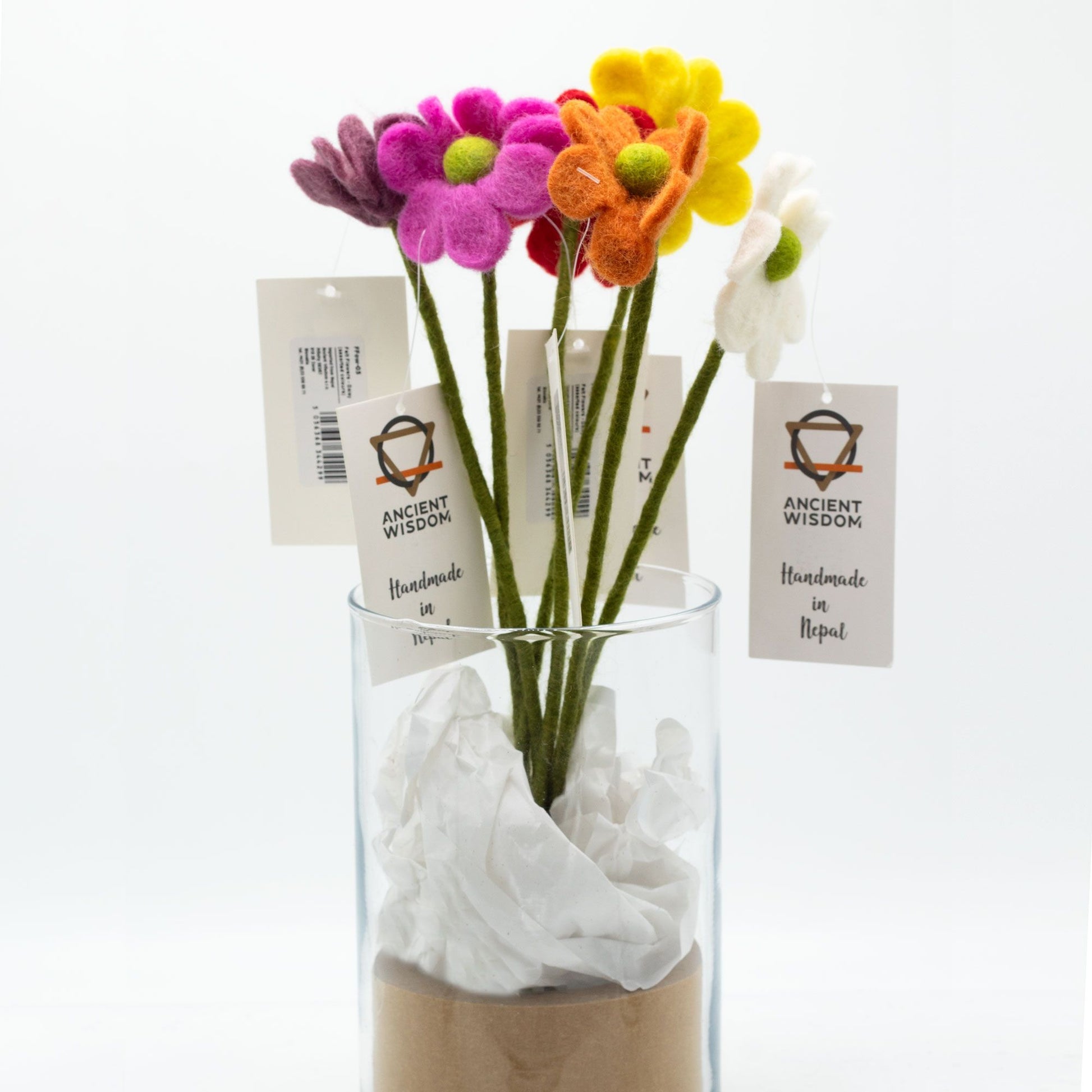 Verpackung & Versand: Die Filzblumen werden sorgfältig in einer wiederverwendbaren Verpackung versendet, um die Umwelt zu schonen und gleichzeitig die Produkte während des Transports zu schützen.