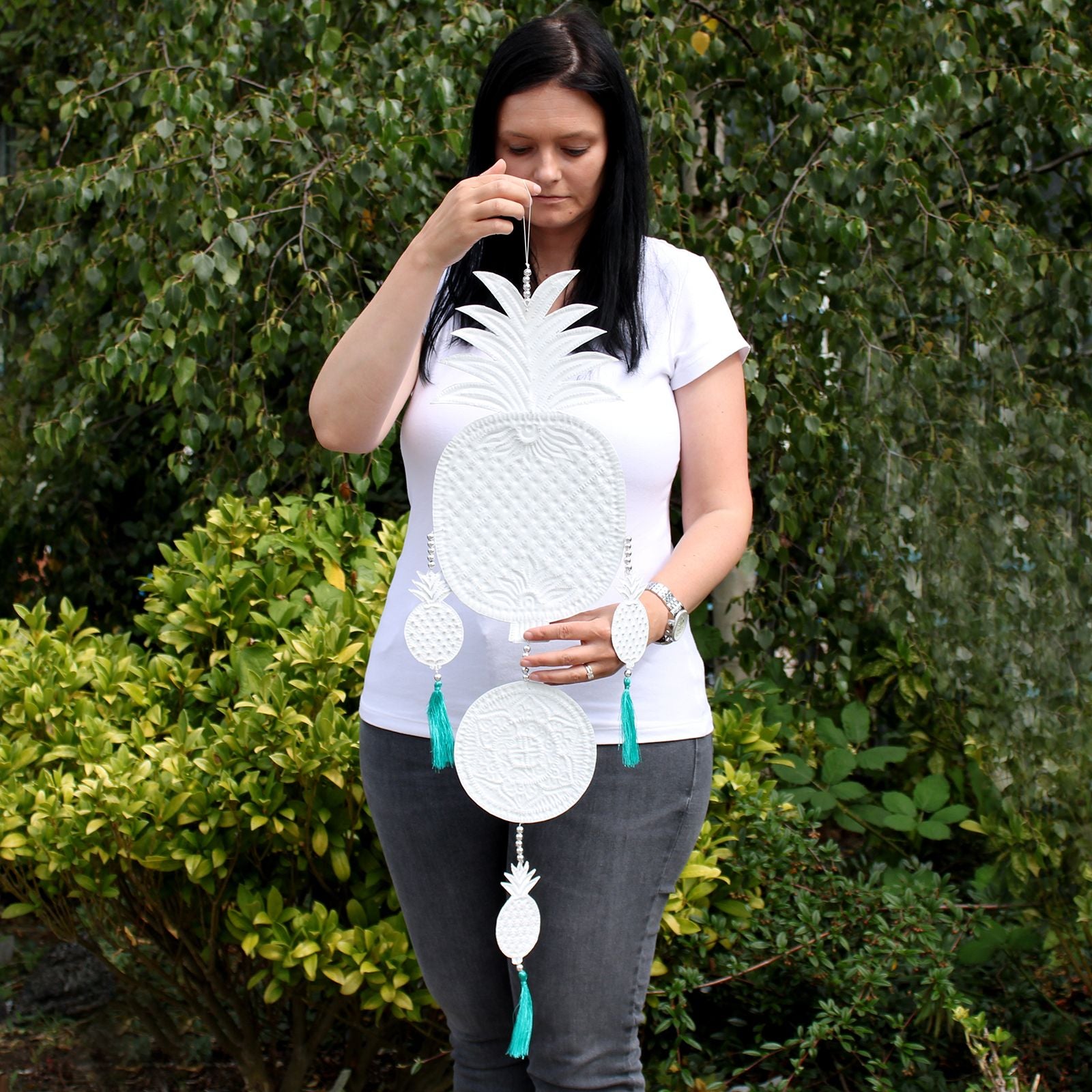 Aluminium Mobile Ananas mit pastellfarbener Ananas – ideal für stilvolle Wohnräume und exotische Akzente.
