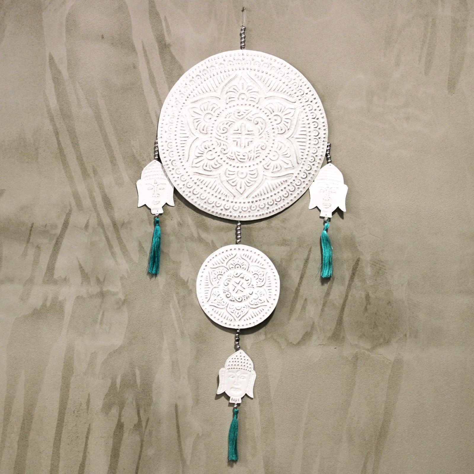 Aluminium Mobile Buddha's Wandschmuck im Bali Stil in modischen Pastellfarben – ideal für ein Zuhause voller Inspiration und Leichtigkeit.