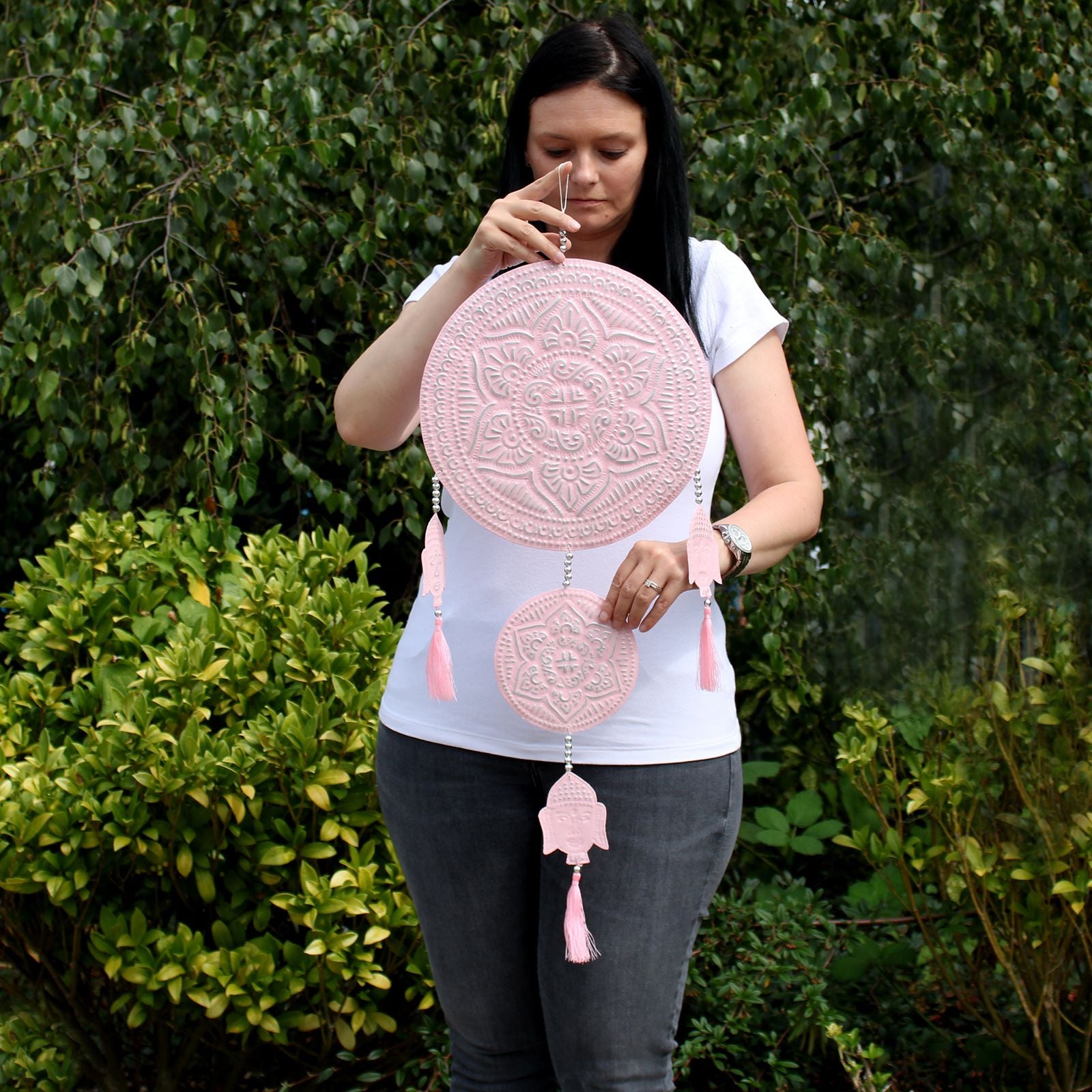 Dieses stilvolle Wandschmuck im Bali Stil bringt mit seinem zauberhaften Design und sanften Pastellfarben einen Hauch Magie in jede Wohnung. Es ist perfekt für Menschen, die eine entspannende und harmonische Atmosphäre in ihrem Zuhause schaffen möchten.
