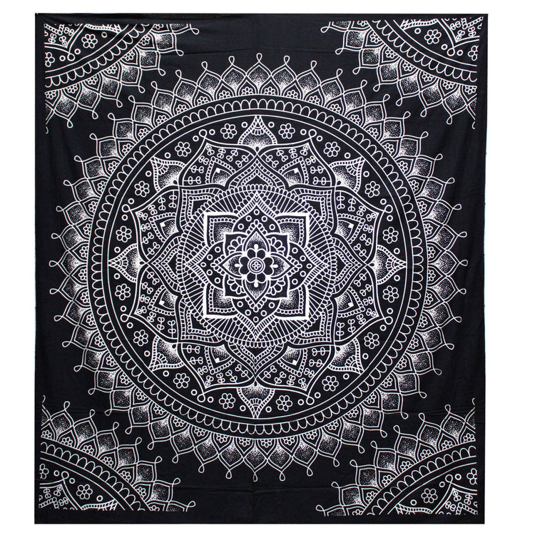B&W Doppel Baumwollbettüberwurf Und Wandbehang - Lotusblume