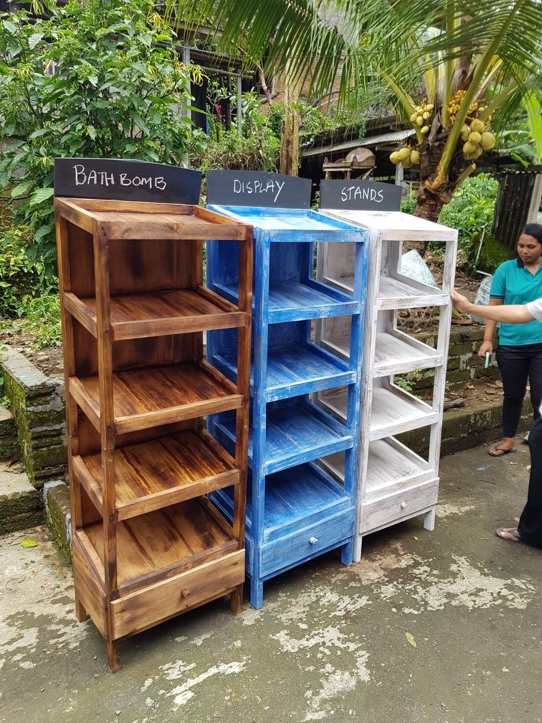 Die Badebombe 5 Regalanzeige Weißgewaschen – ideal für einladende Shop-Präsentationen und stilvolle Wellness-Events. Diese elegante Regalanzeige sorgt für eine ansprechende Präsentation Ihrer Badebomben und zieht die Aufmerksamkeit Ihrer Kunden auf sich.