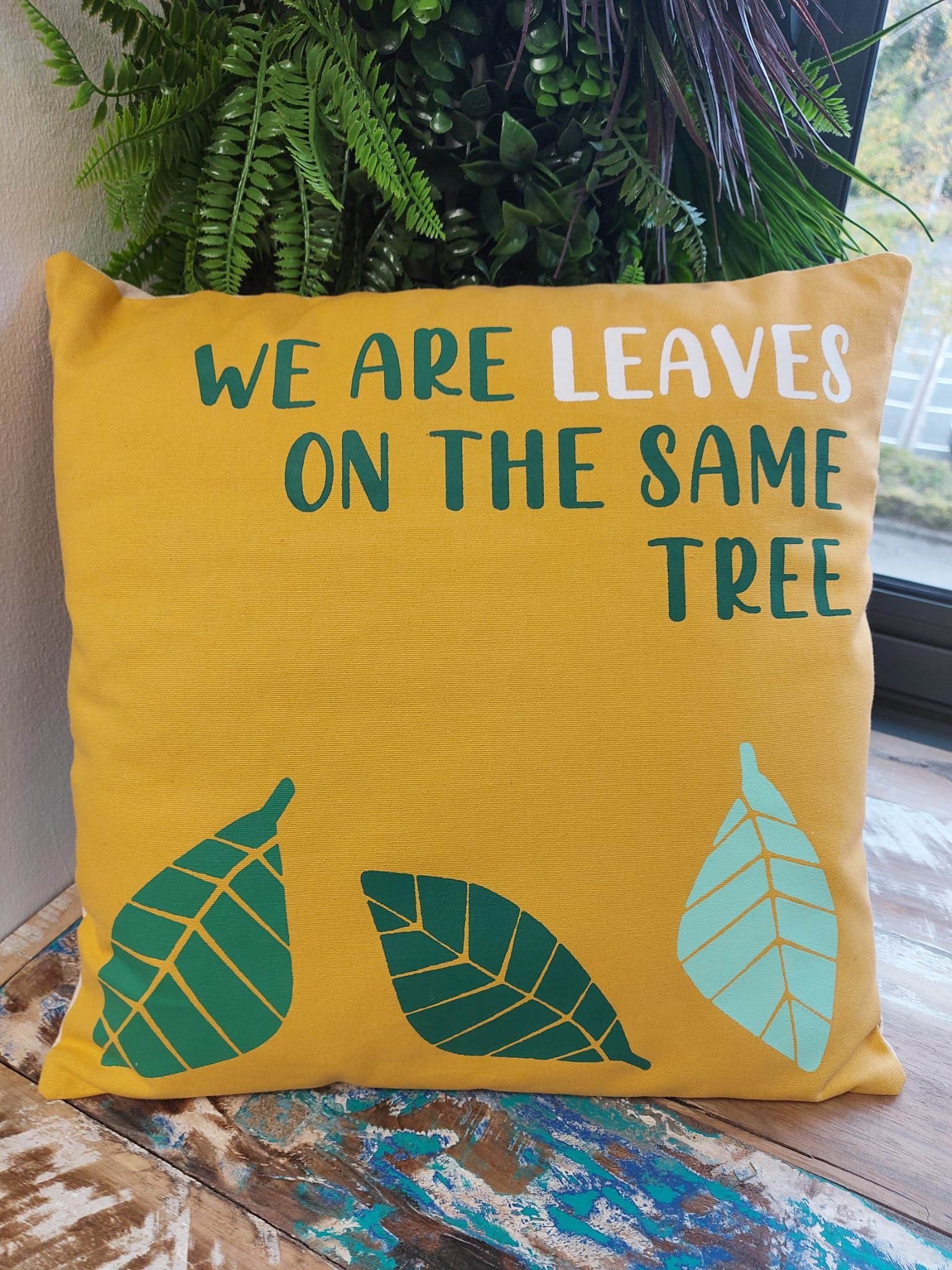 Bedruckter Baumwollkissenbezug - Wir Sind Blätter mit poetischem Seneca-Zitat – ideal für stilvolle Wohlfühlmomente zu Hause.