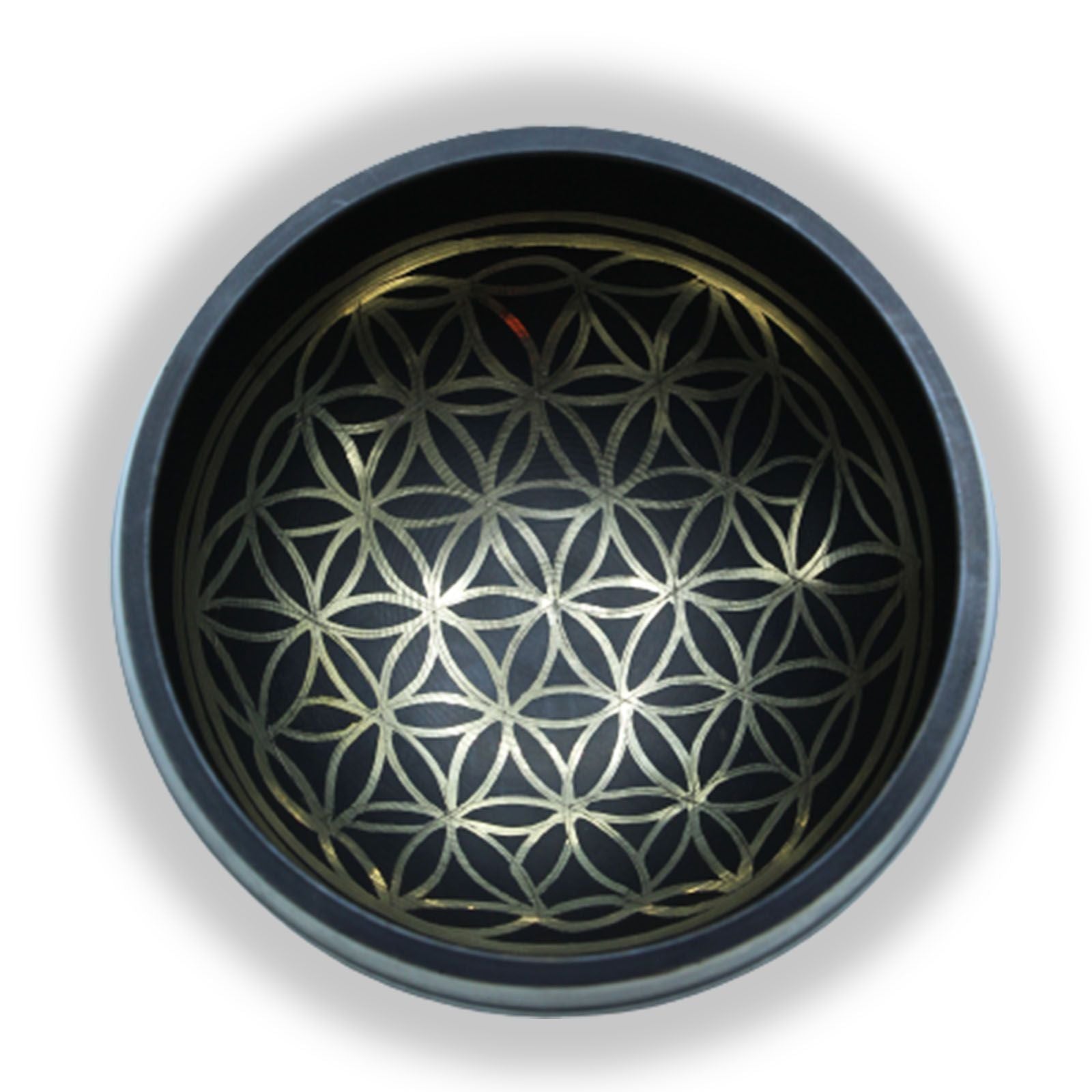 Tibetisches Klangschalen Set mit der Blume des Lebens – ideal für Meditation, Entspannung & harmonisierende Rituale.