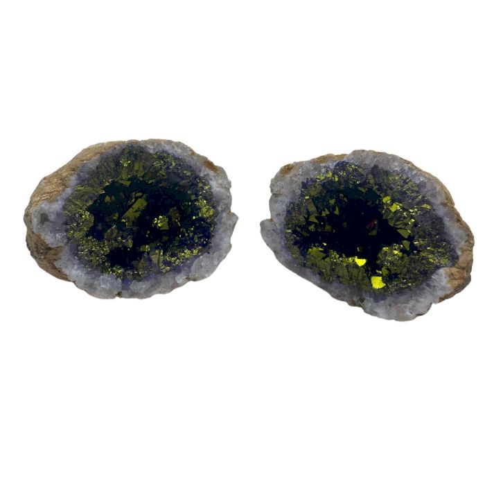 Bunte Kalzit Geoden mit lila und goldenen Kristallen – ideal für Sammler:innen, Deko-Liebhaber und einzigartige Geschenkideen.