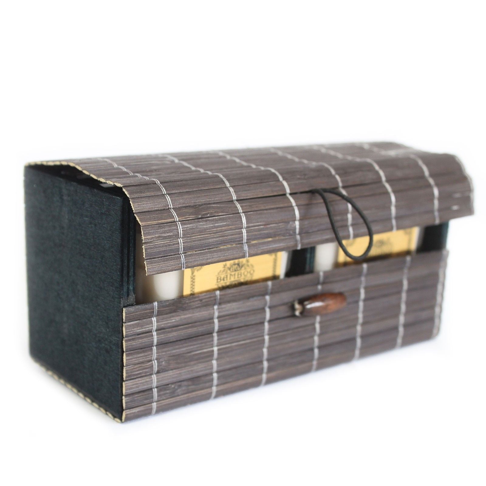 Doppelte Box Mit Rillen Aus Bambus – ideal für stilvolles Verschenken von Kerzengläsern und kleinen Kostbarkeiten.