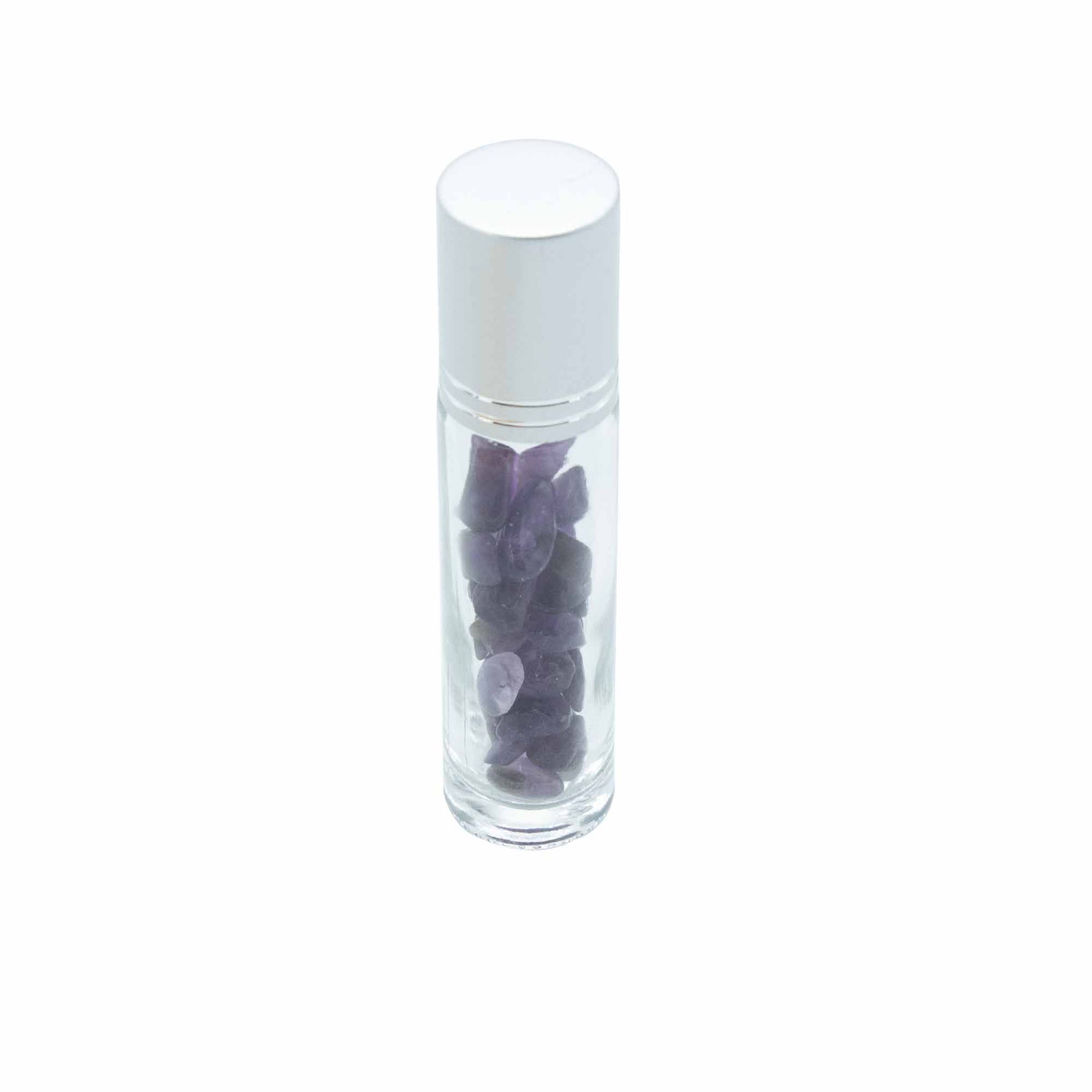 Edelstein Ätherische Öl Rollerflasche - Amethyst - Silberner Deckel + Edelstein Roller Spitze für 5ml Flasche - Amethyst