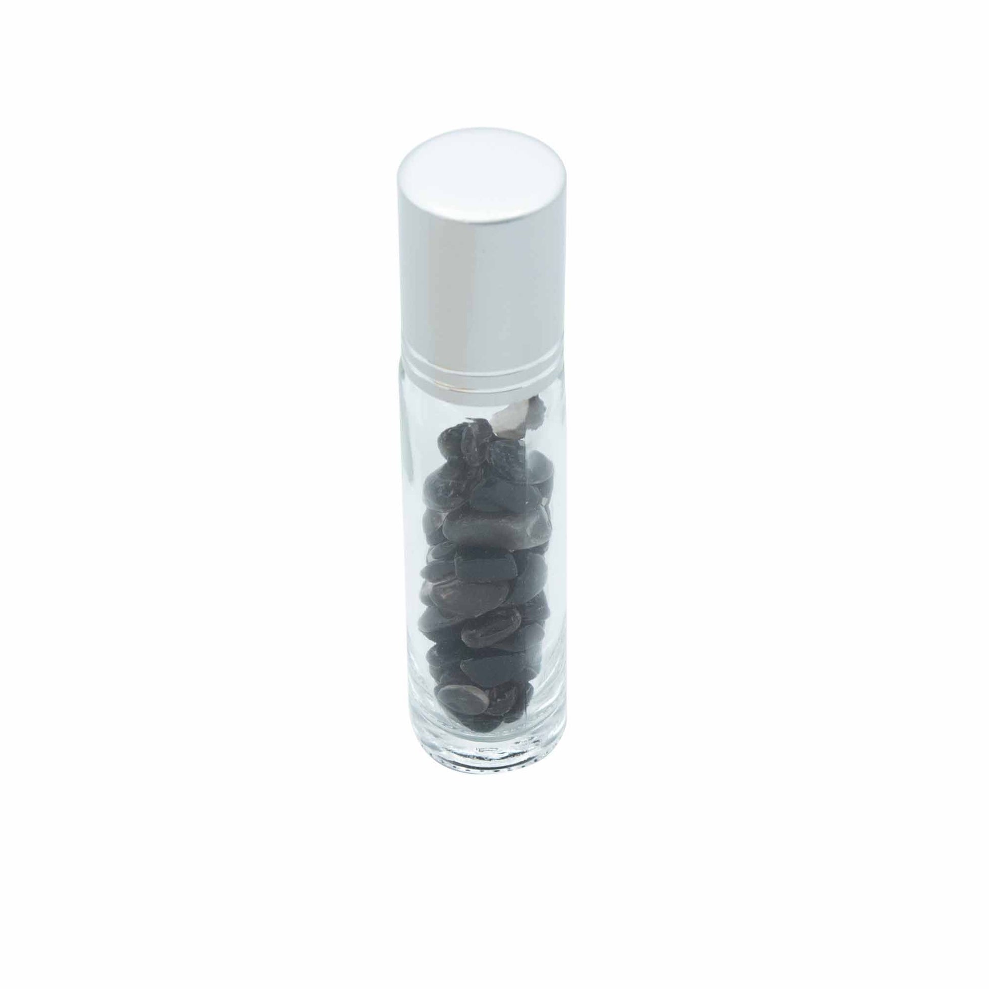Edelstein Ätherische Öl Rollerflasche - Schwarzer Turmalin - Silberner Deckel + Edelstein Roller Aufsatz für 5ml Flasche - Schwarzer Turmalin