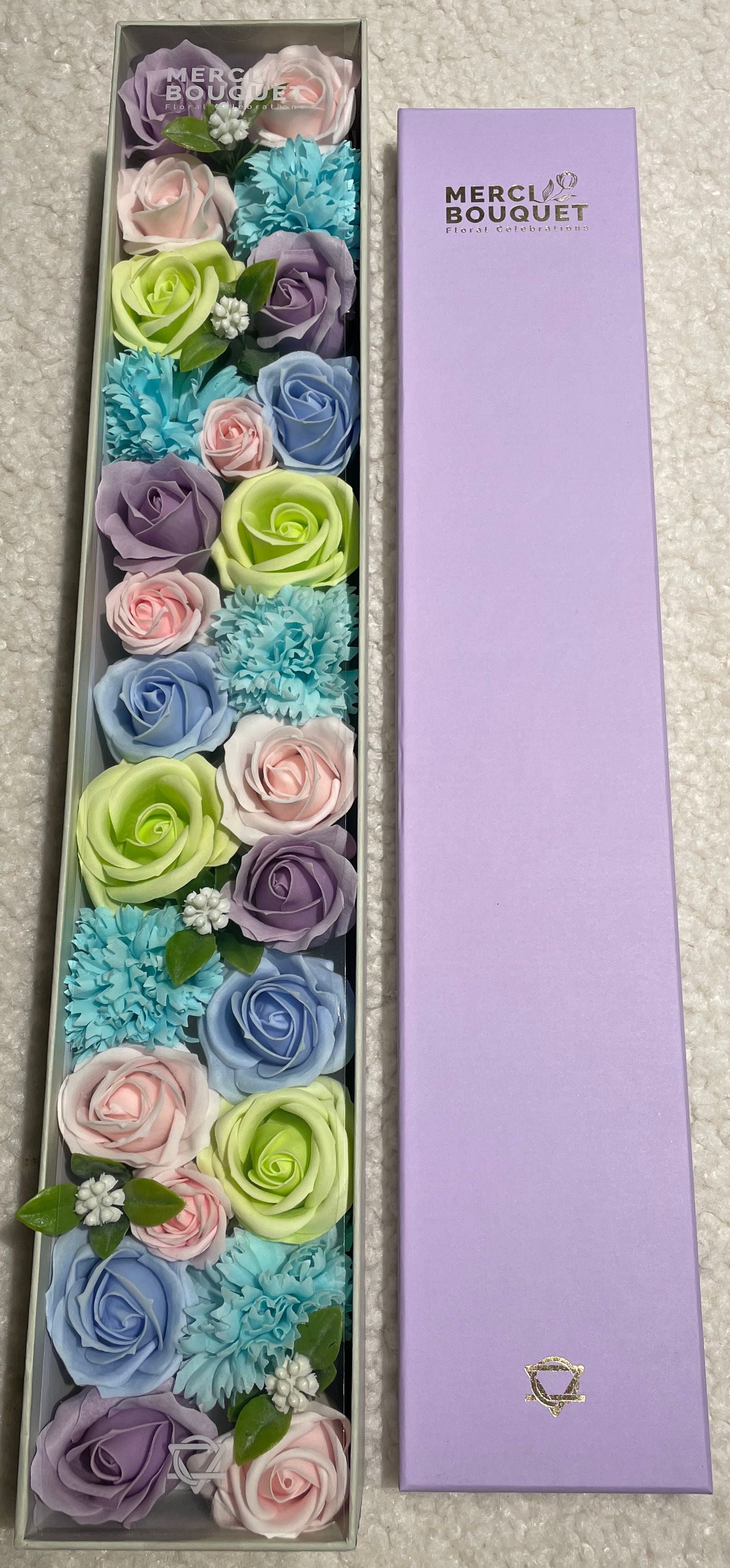 - Materialien/Inhaltsstoffe: Hochwertige Seifenblumen, die handgefertigt sind und aus umweltfreundlichen Materialien bestehen.
