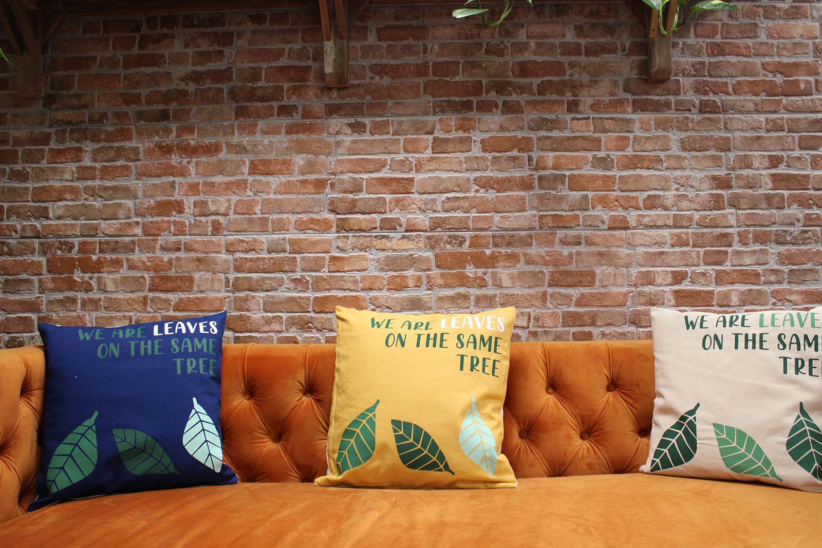 Gedruckter Baumwollkissenbezug - Wir Sind Blätter - Gelb