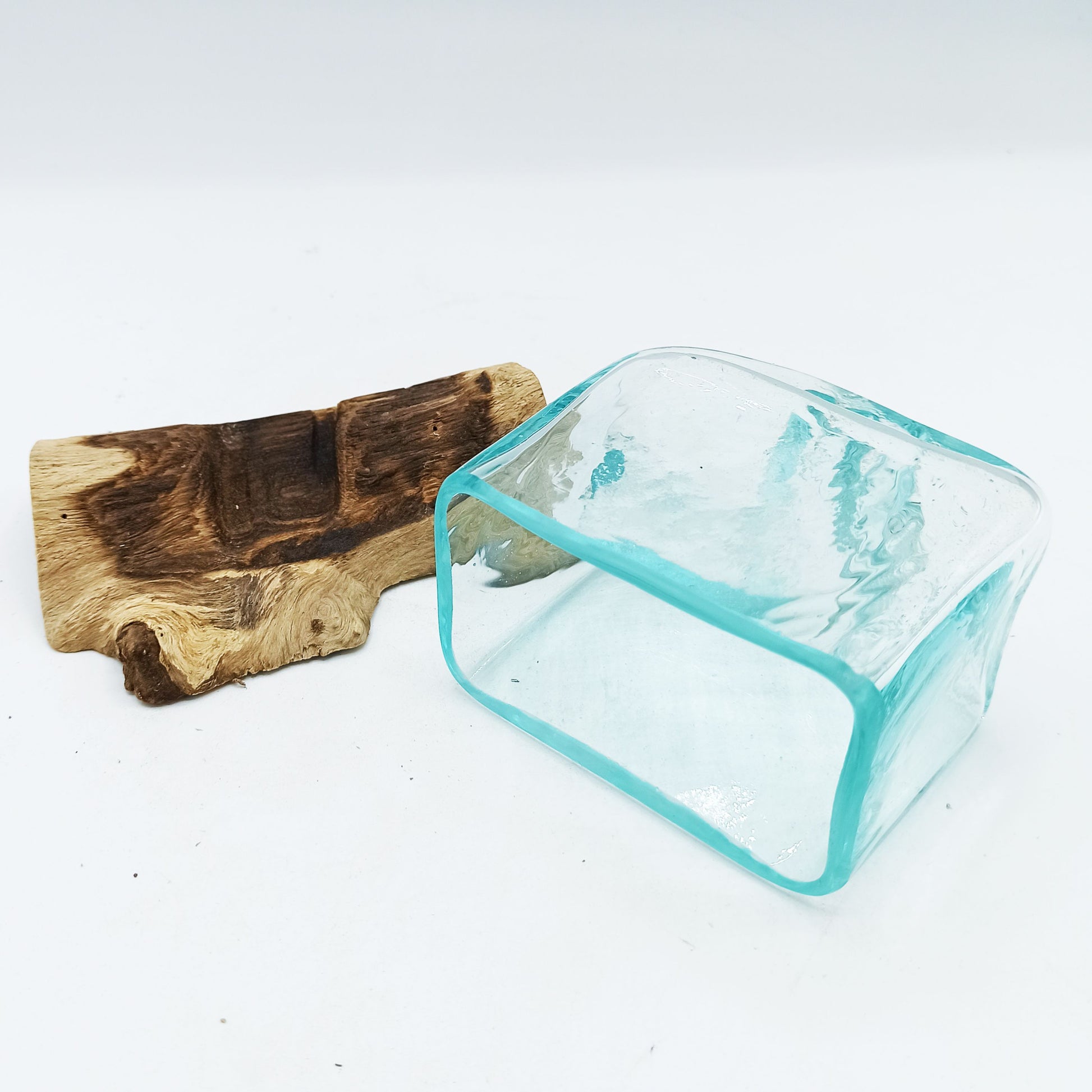Geschmolzenes Glasbecken auf Balinesischem Gamalholz mit Ständer – einzigartiges Wohnaccessoire für Naturliebhaber und Designfans. Dieses handgefertigte Stück vereint die Magie der Natur mit balinesischer Handwerkskunst und verwandelt jedes Zuhause in ein individuelles Kunstwerk.