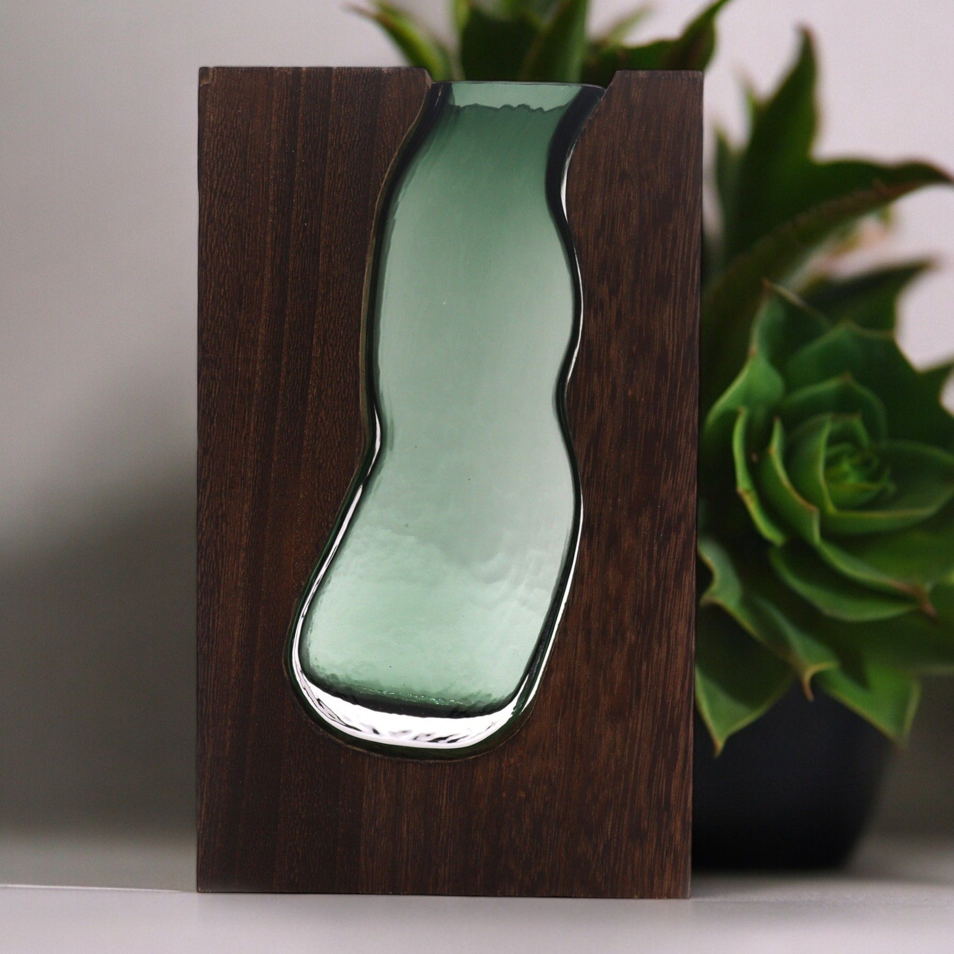 Glasvase Terrarium Aus Dunklem Tung Holz 14 5x5x23cm