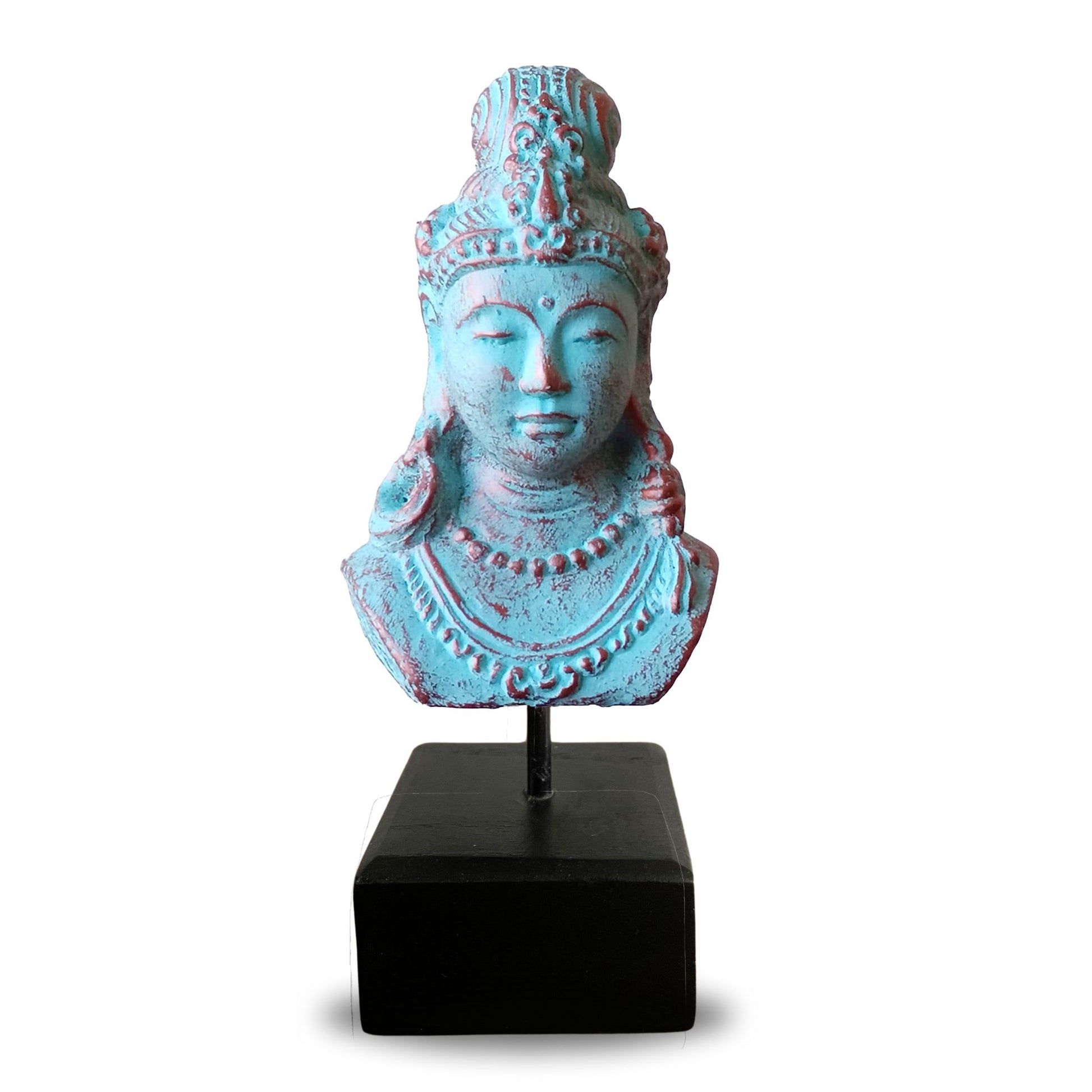 Glückliche Java Prinzessin Auf Stand mit grünem Kupfer-Finish – ideal für Liebhaber asiatischer Kunst und stilvolle Wohlfühl-Oasen.