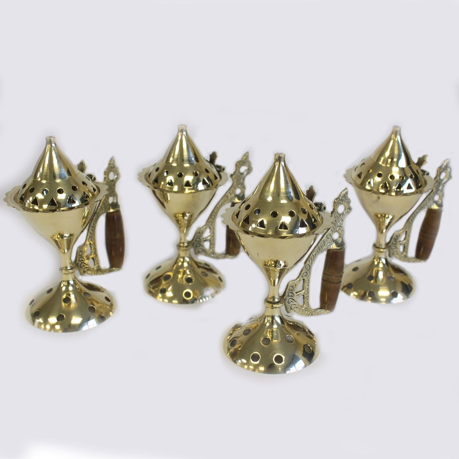 Traditioneller Messing-Kegelbrenner mit abnehmbarem Holzgriff – ideal für entspannte Räucherrituale und stilvolle Raumduftmomente.