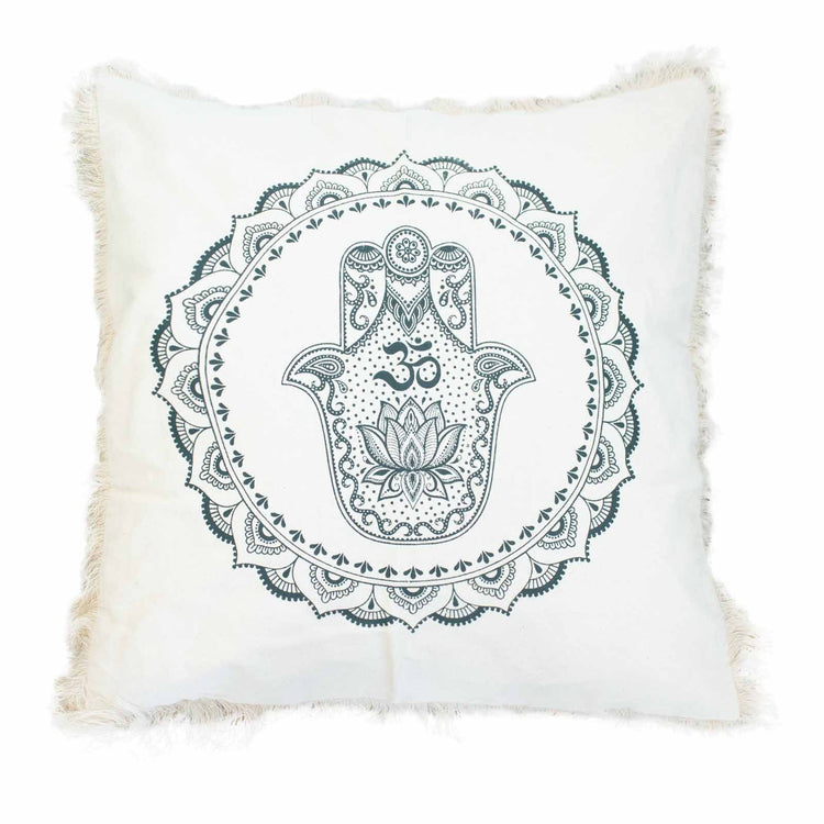 Hamsa Mandala Kissenbezug in Grün – ideal für Yoga, Meditation und entspannte Stunden.
