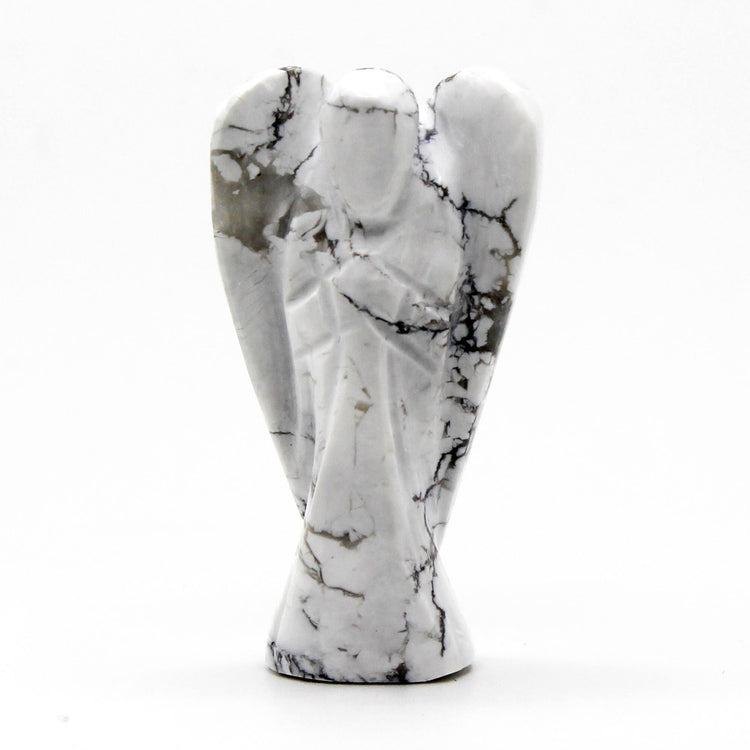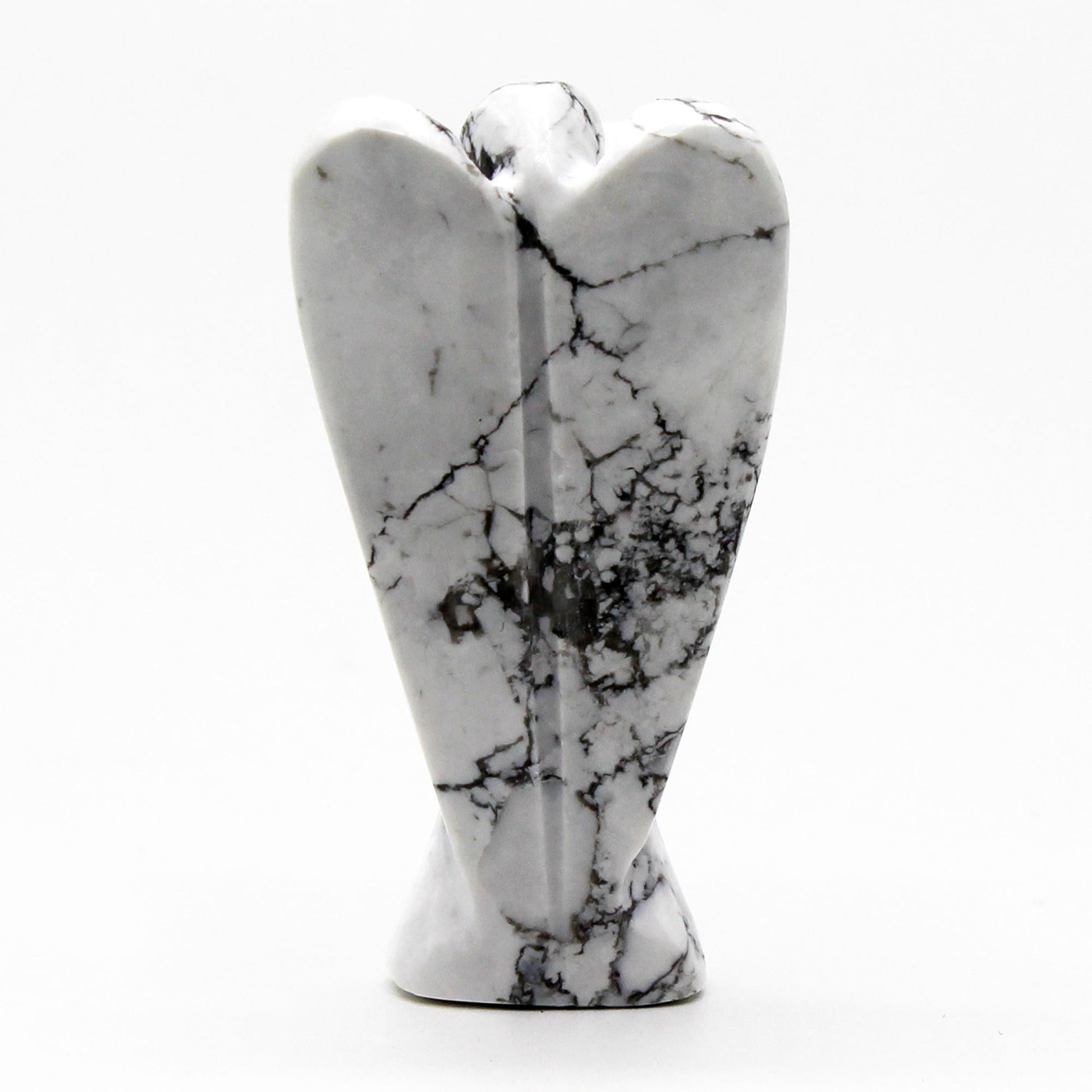 Handgefertigte Engel Figur aus weißem Howlith – ideal für Momente der Ruhe und spirituellen Schutz.