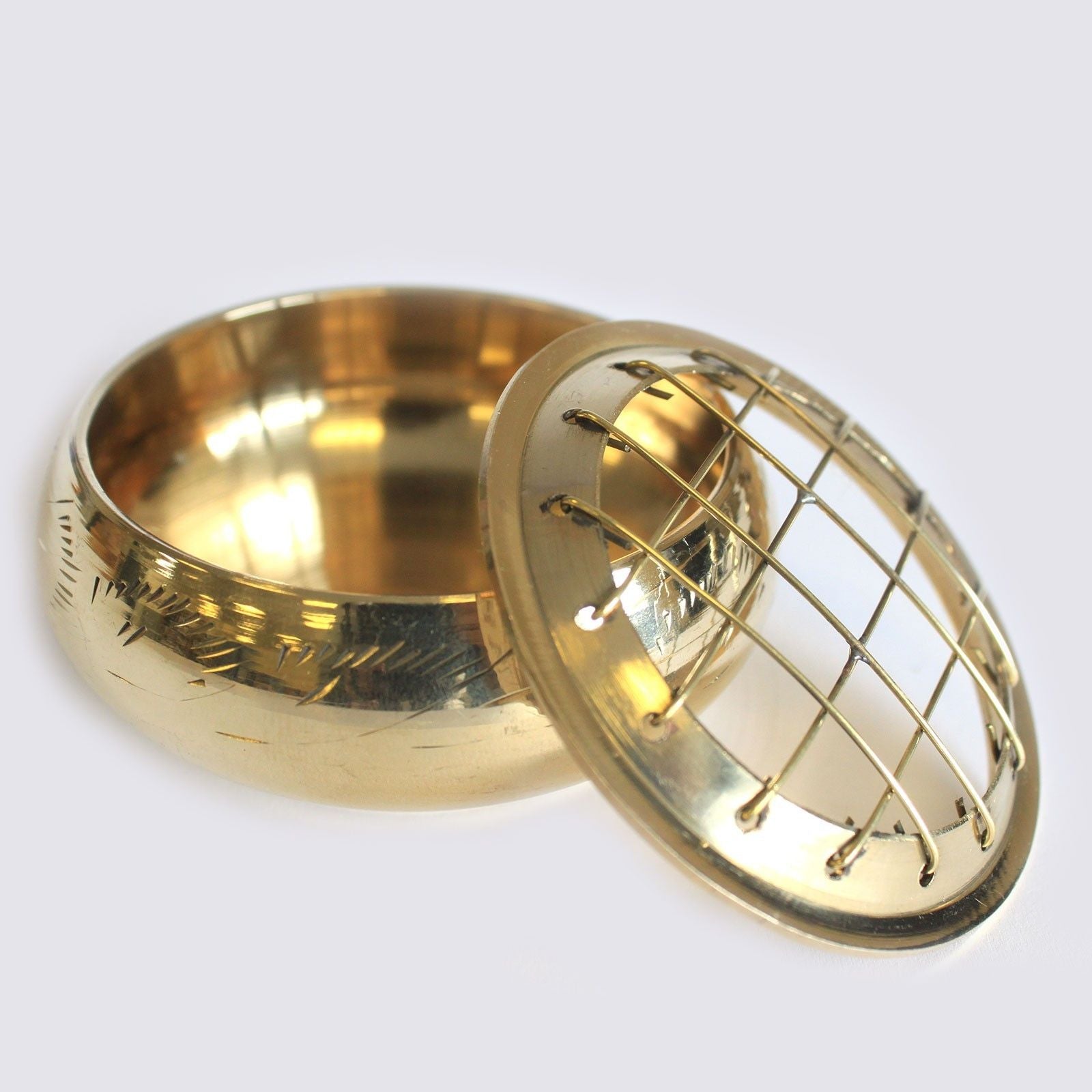 Holzkohlen Duftlampe Mit Messing Halter Und Bildschirmdeckel
