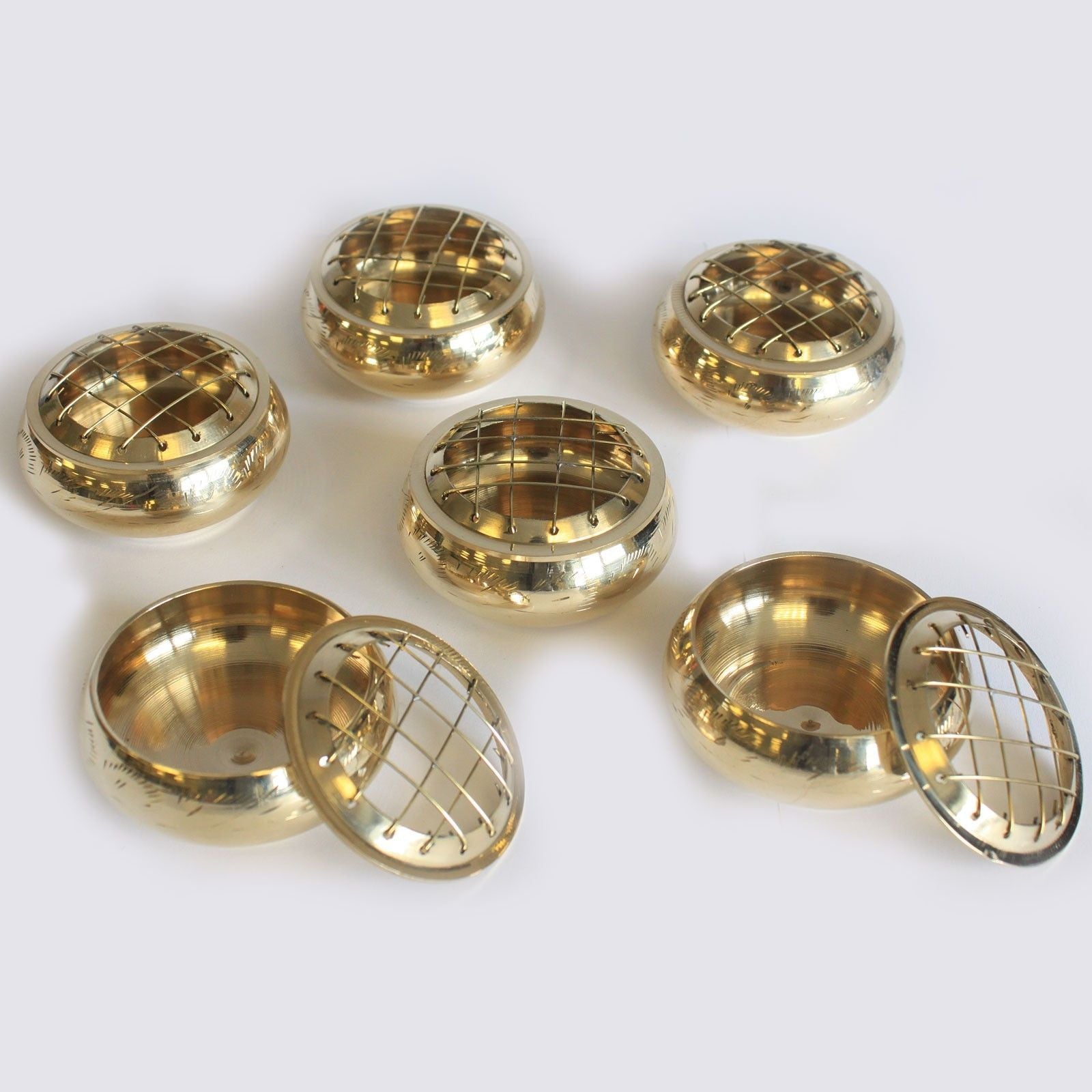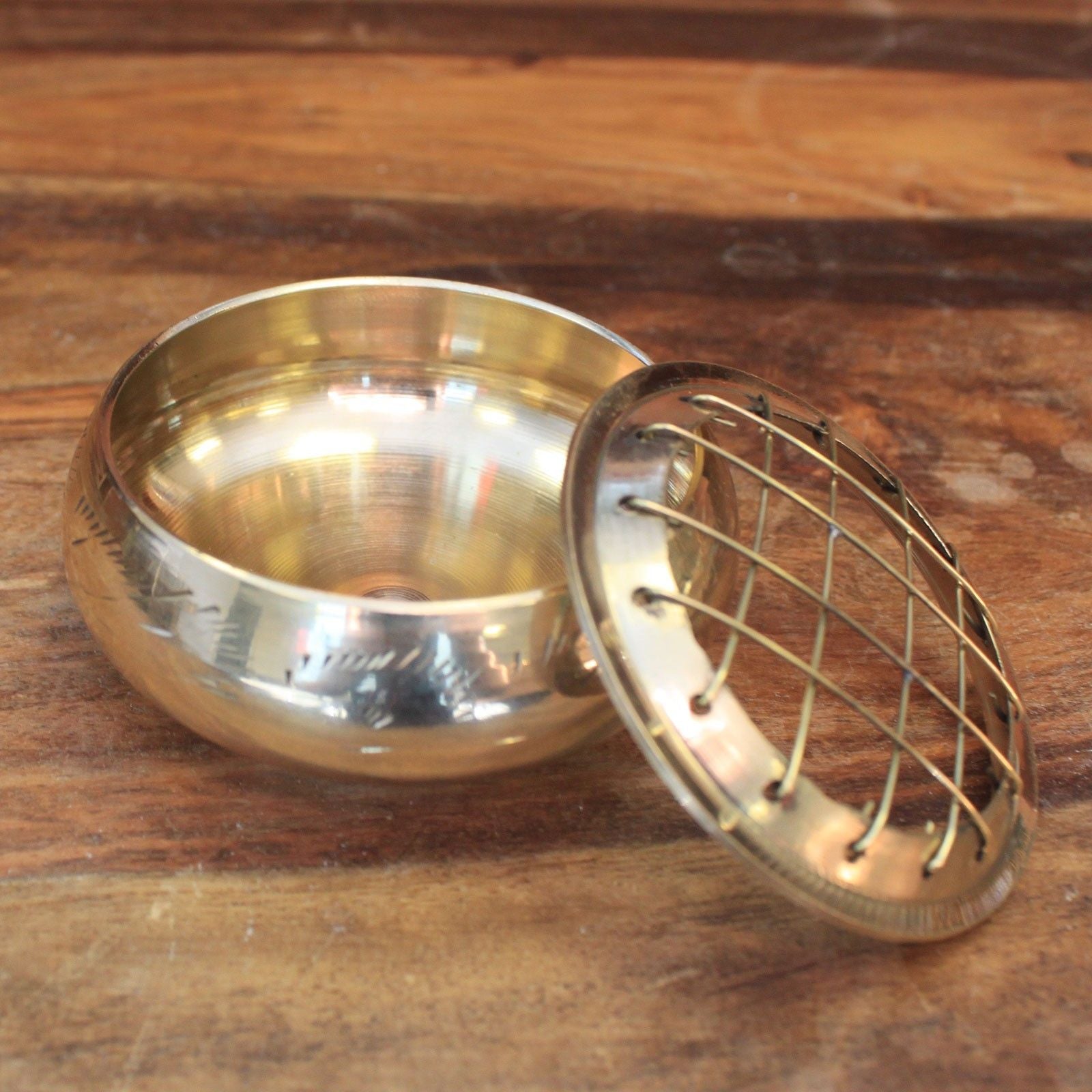 Traditioneller Messing-Incense Burner mit Holzkohlenhalter und Bildschirmdeckel – ideal für duftende Rituale und entspannte Momente zuhause.