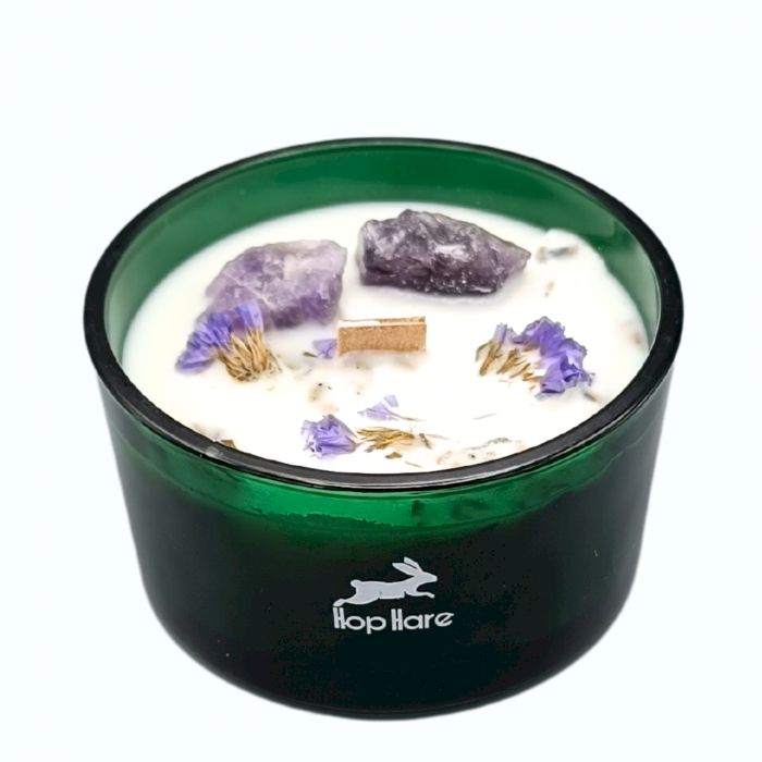 - Materialien/Inhaltsstoffe: Hochwertiges Wachs, ätherisches Lavendelöl und echte Amethyststeine.