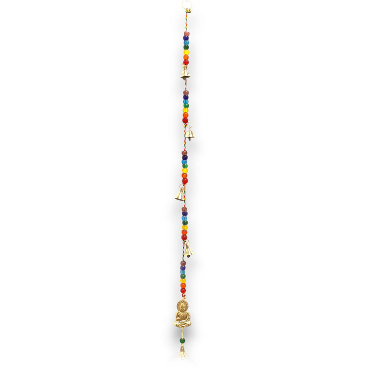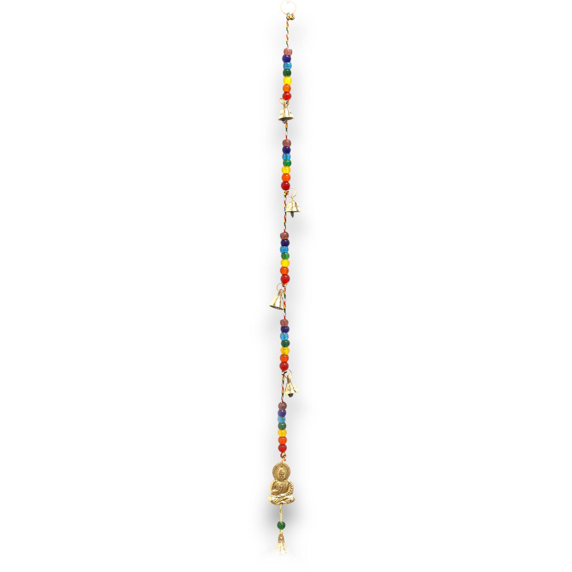 Indische Klangspiel Edelstahl Buddha Mit Chakra Perlen Schnur Glocken 53cm