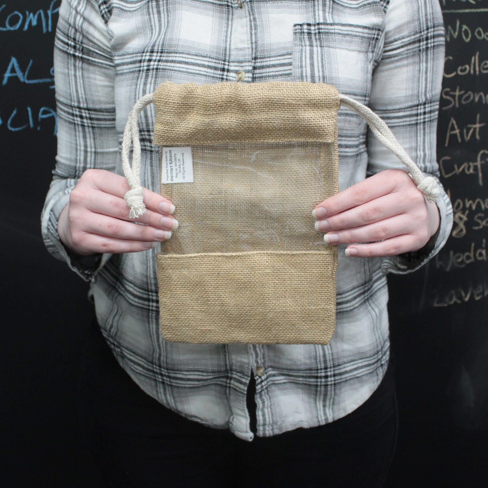 Jute Fensterbeutel mit Sichtfenster – ideal für Schmuck, Badekugeln und Seifen.