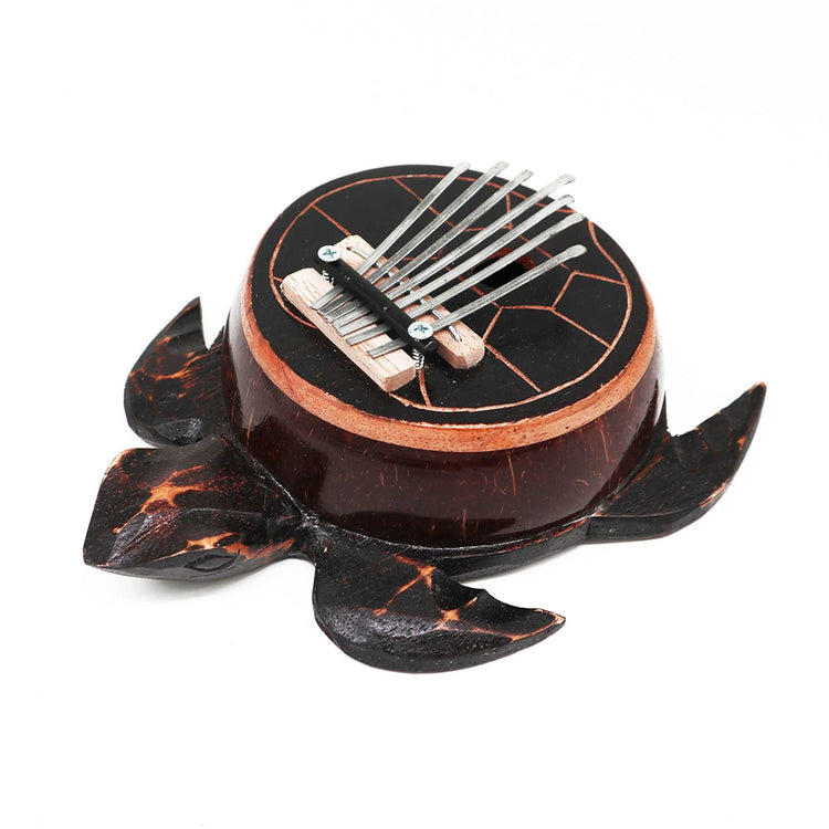 Dekoratives Musikinstrument Kalimba aus antiker Schildkröte-Kokosnuss – ideal für entspannte Momente und kreative Musikliebhaber.
