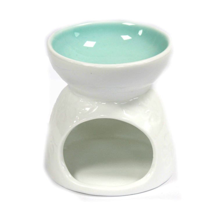 Klassischer Weißer Ölverdampfer - Floral mit Teal Schale