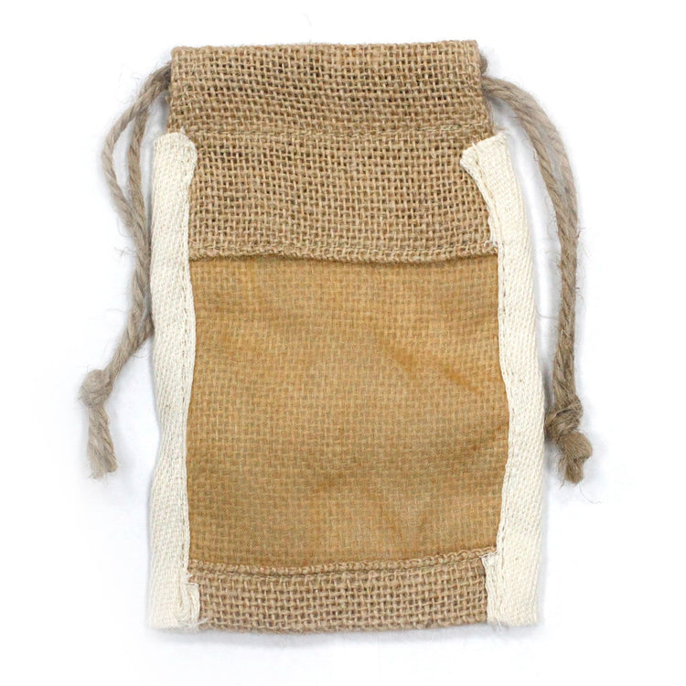 Kleine gewaschene Jute Tasche mit durchsichtigem Baumwollfenster – ideal für stilvolle Geschenkverpackungen und nachhaltige Aufbewahrung.