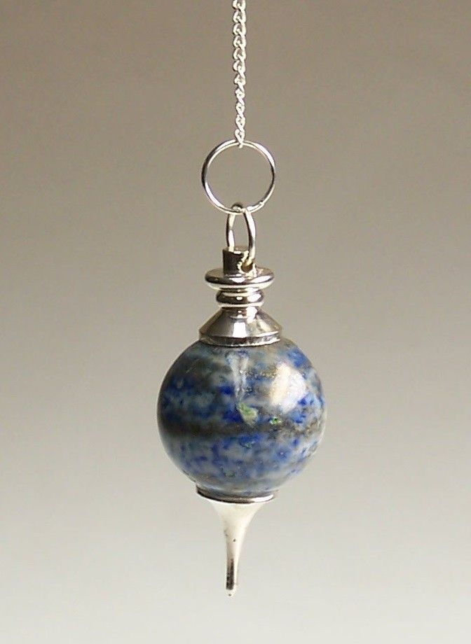 Kugel Pendel aus Lapislazuli mit Silberkette und Edelsteinperle – ideal für spirituelle Rituale und Energiereisen.