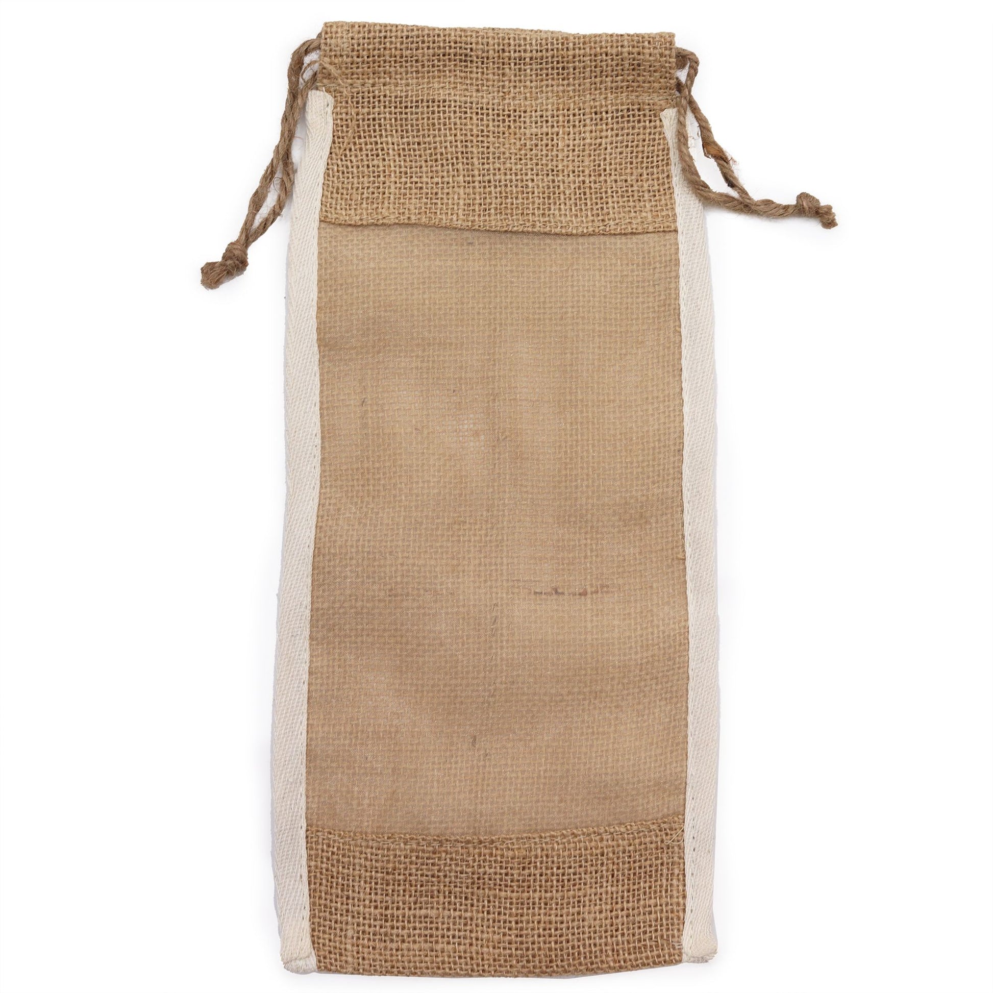 Langer Gewaschener Jutebeutel mit Sichtfenster – ideal für nachhaltige Geschenkverpackungen und umweltbewusste Organisation.