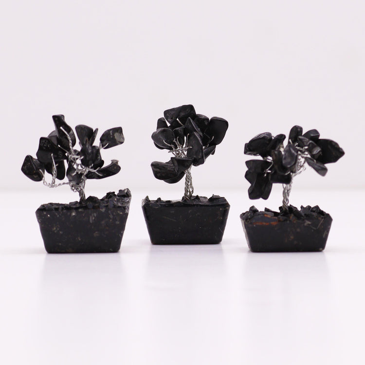 Mini Edelstein Bäume Auf Orgonit Basis - Schwarzer Achat Mit 15 Steinen