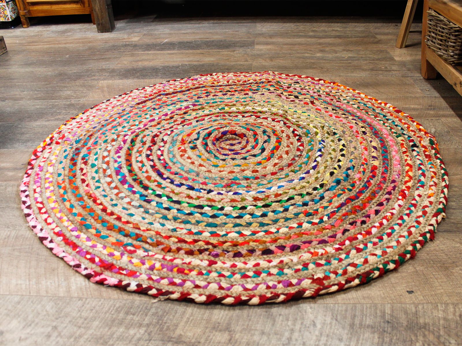 Runder Jute Und Recycelter Baumwollteppich 120 Cm