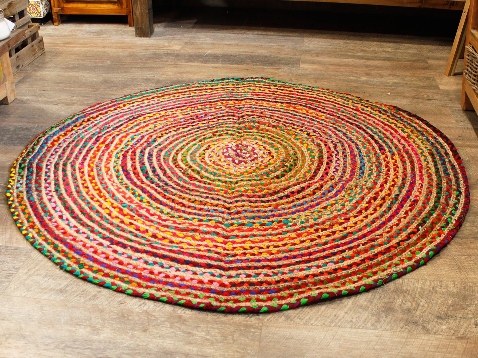 Runder Jute Und Recycelter Baumwollteppich 150 Cm