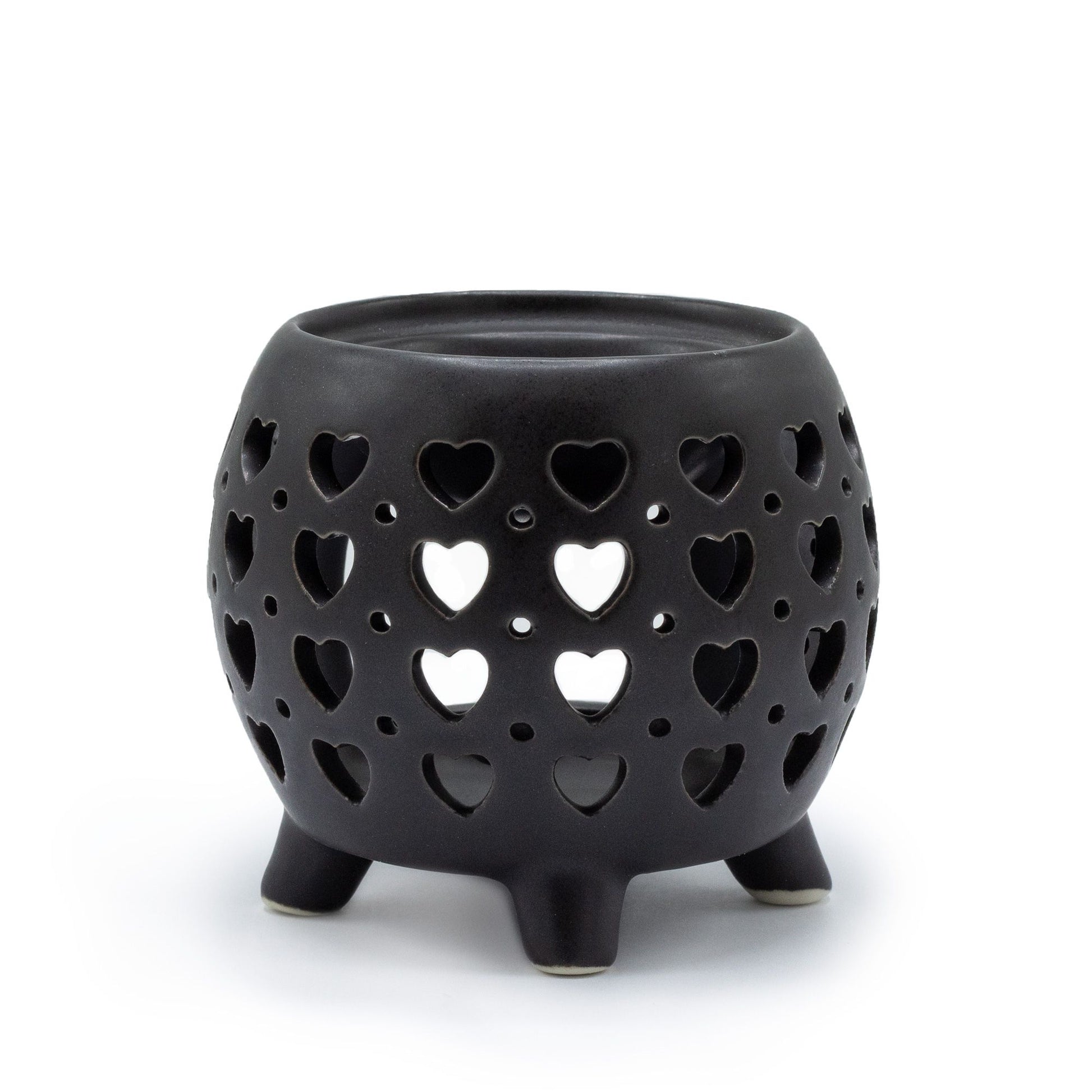 Schwarz Matt Squat Pot Öl Brenner mit vielen Herzen – ideal für aromatische Entspannung und romantische Abende.