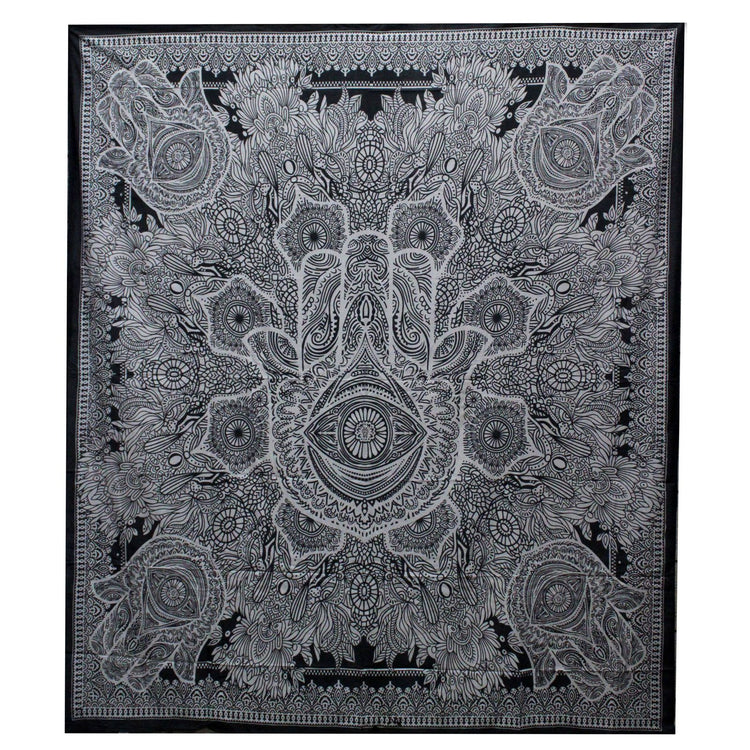 Schwarz Weiß Doppel Baumwolle Bettüberwurf Wandbehang Hamsa