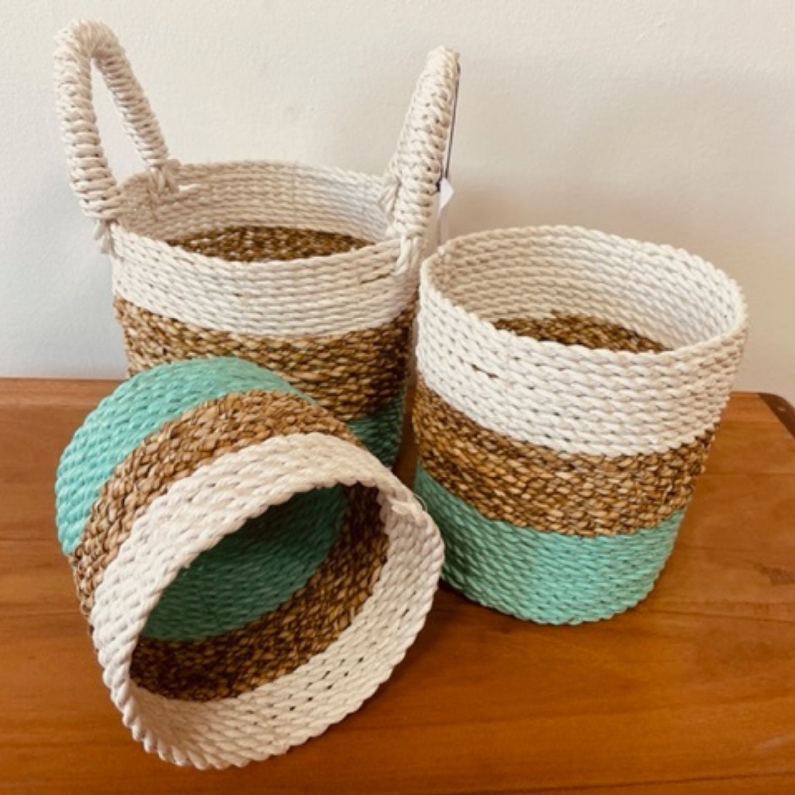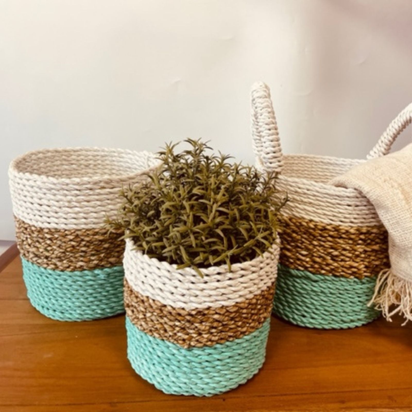 Seagrass Korb Set Grün Natur Weiß