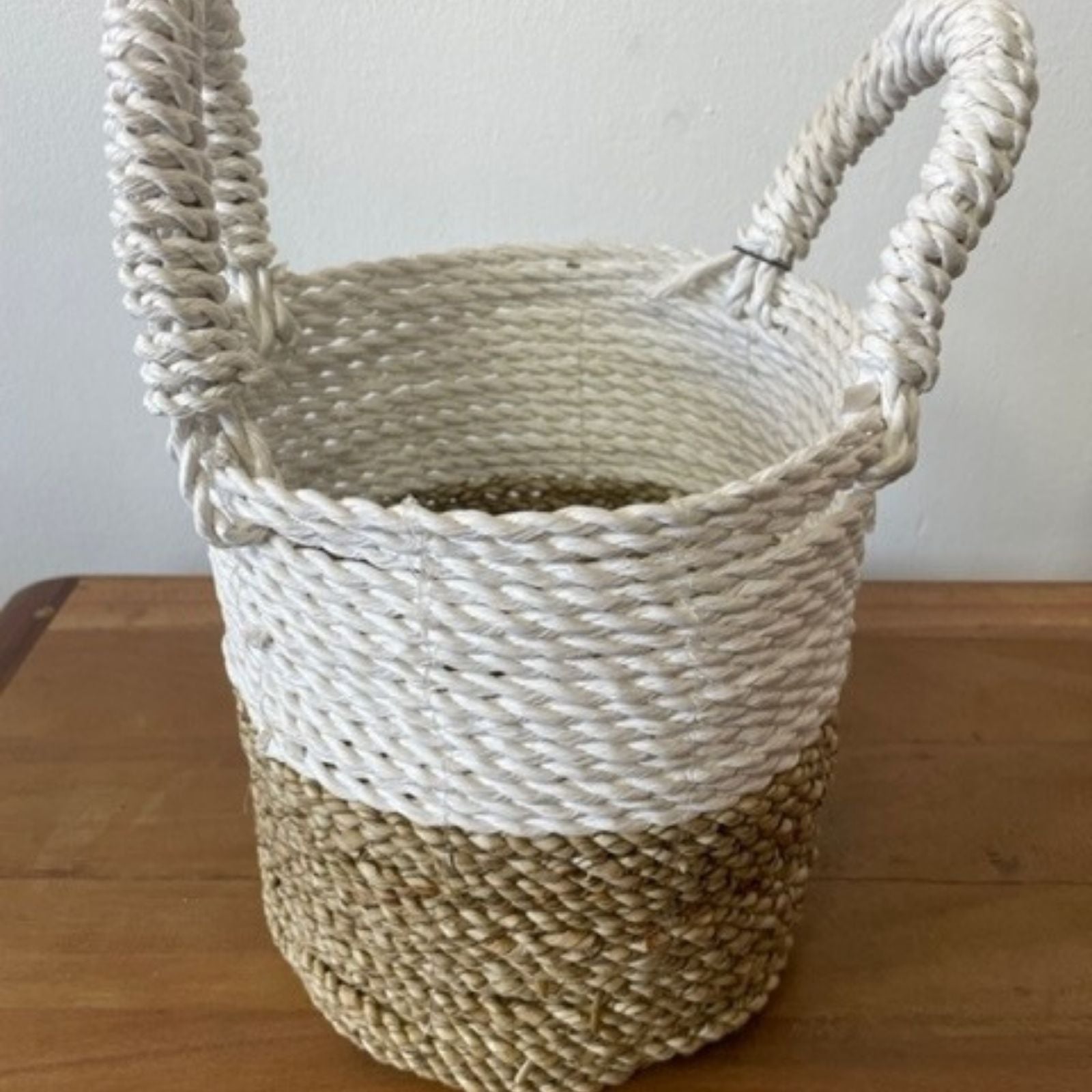 Seegras Korb Set - Natürlich Weiß mit handgewebtem Design – ideal für stilvolle Wohnaccessoires und Geschenkideen.