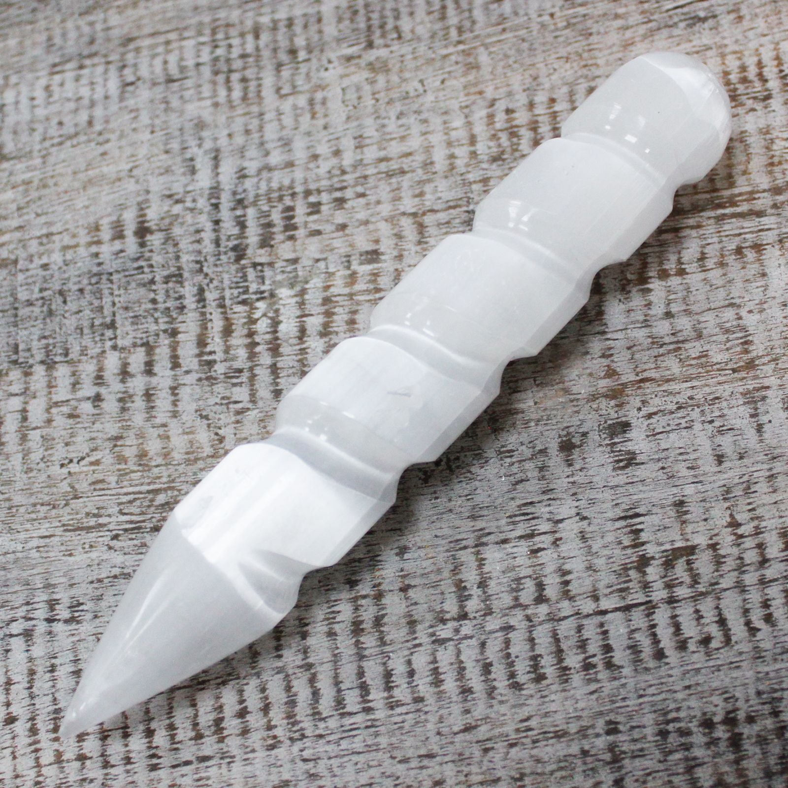 Selenit Spiralstäbe 16 cm mit Spitze – ideal für spirituelle Praktiken und Heilungsrituale