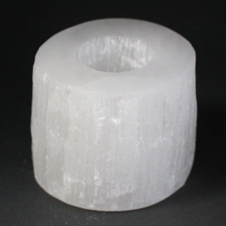 Der Selenit Zylinder Kerzenhalter mit transluzentem Kristall – ideal für eine entspannende Atmosphäre und spirituelle Anlässe.