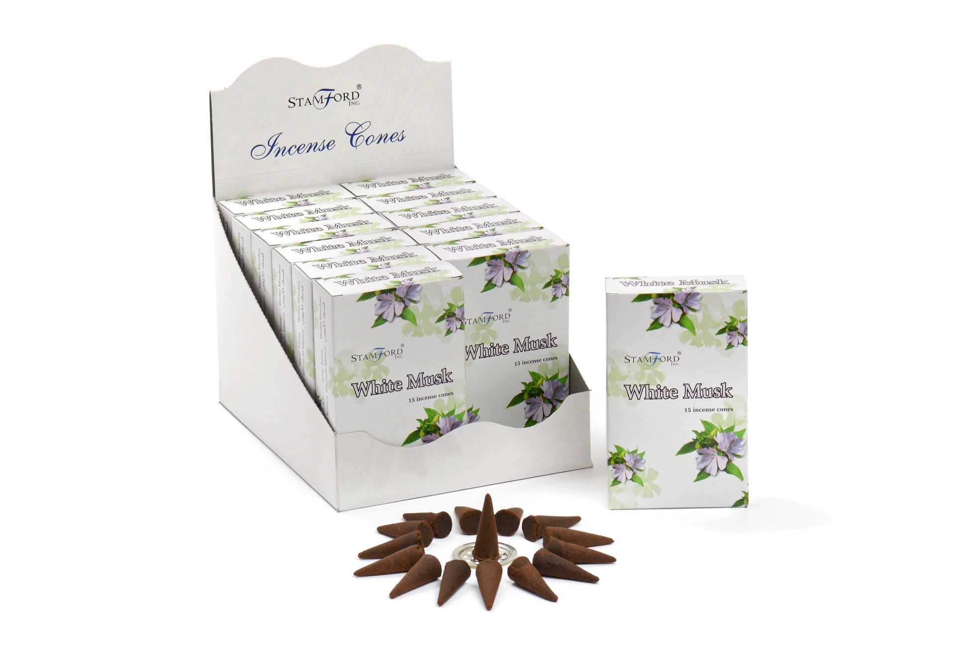 Weiße Moschus Räucherkegel mit mystischem Aroma – ideal für Entspannung und Meditation.